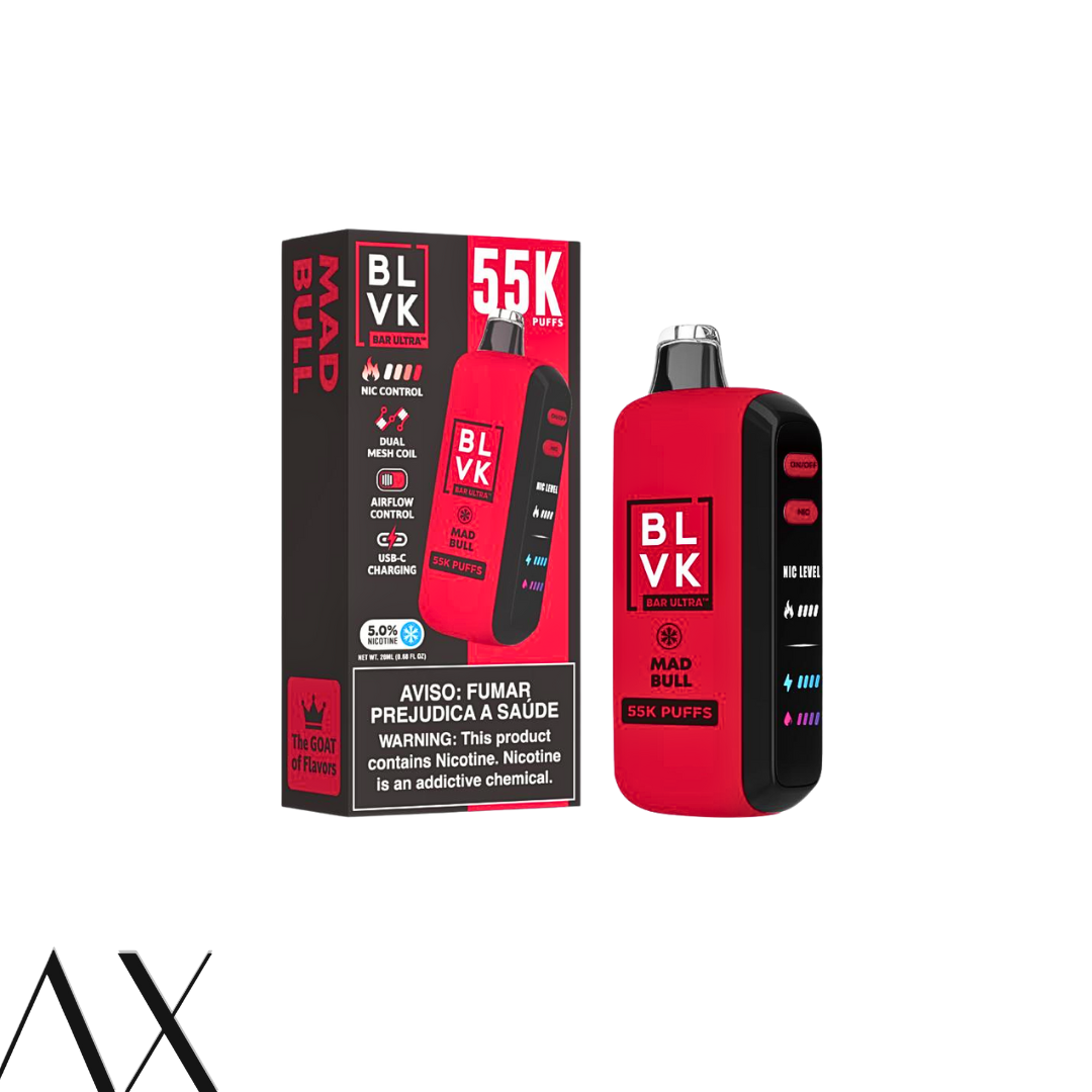 The BLVK Bar Ultra 55K is a high-capacity disposable vape designed for 55,000 puffs. It features a dual mesh coil system for consistent flavor and vapor, adjustable airflow, and a USB-C rechargeable battery for long-lasting performance. Users can customize their experience with nicotine strength adjustment, making it suitable for both beginners and experienced vapers. The device is built for durability and ease of use, providing a premium vaping experience without the need for frequent refills.